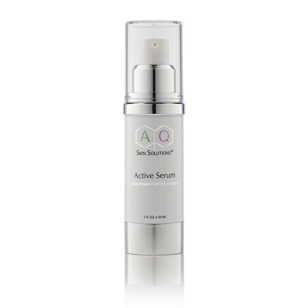 AQ Skin Solutions Active Serum is a highly active serum which contains stem cell derived growth factors to renew skin and accelerate skin cell regeneration. Although your skin’s natural processes that repair damage and keep it looking youthful become less efficient over time, you can return your skin cell functions to a younger state with Active Serum. This concentrated blend of the same growth factor proteins found in healthy, young skin plus anti-aging antioxidants stimulates collagen production (essential for firm skin), activates the skin’s natural regeneration capabilities, and fights free radical damage that causes premature aging.