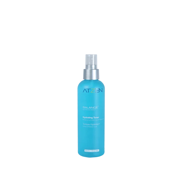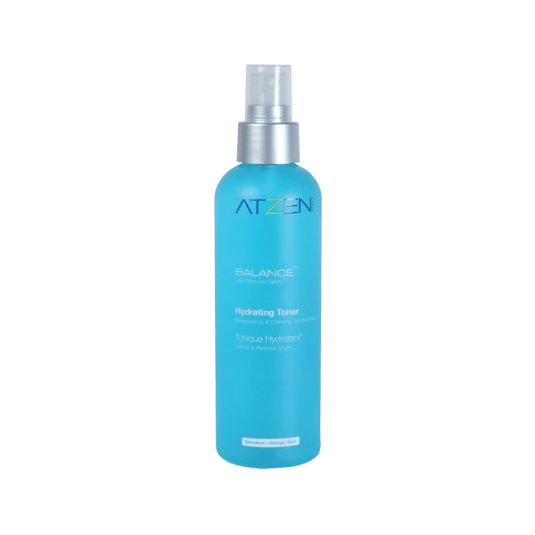 ATZEN Hydrating Toner is a skin transforming toner; a must after cleansing, exfoliating, mask and anytime water touches skin. Restores the natural pH of the skin that is lower than the pH of water; restores your acid mantel. Soothes, hydrates and prepares skin for serums or creams. Makes all skin care products more effective. Is a treatment product with numerous powerful and innovative ingredients. Alcohol-free. The beautiful turquoise blue color is made of 100% organic flower extracts.