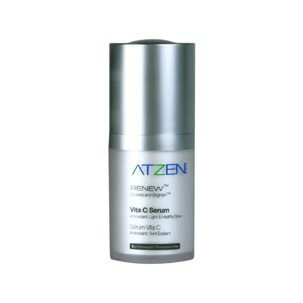 ATZEN Vita C Serum is a new generation vitamin C serum; stable and time release skin brightening and lightening action while hydrating and nourishing sun damaged skin. Antioxidant; pore clearing for acne-prone skin. This vitamin C is far superior to other vitamin C because it crosses the skin’s cell membrane and works directly inside the cell to improve skin functions, skin repair; it improves the skin’s condition fast. Is bio-available, which means that the skin recognizes it as if it was its own, and accepts it completely. Formulated for sensitive skin. Very hydrating.