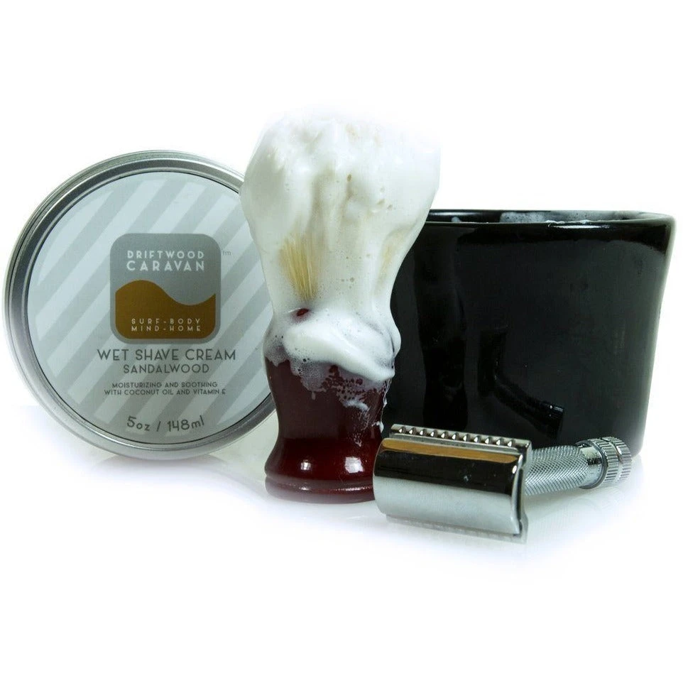 Driftwood Caravan Wet Shave Cream is an easy to use, all natural shave cream that is great for your skin and easy to use. Made for all bodies, including the ones with sensitive skin. Just add a little water and your favorite razor and you are ready to go!