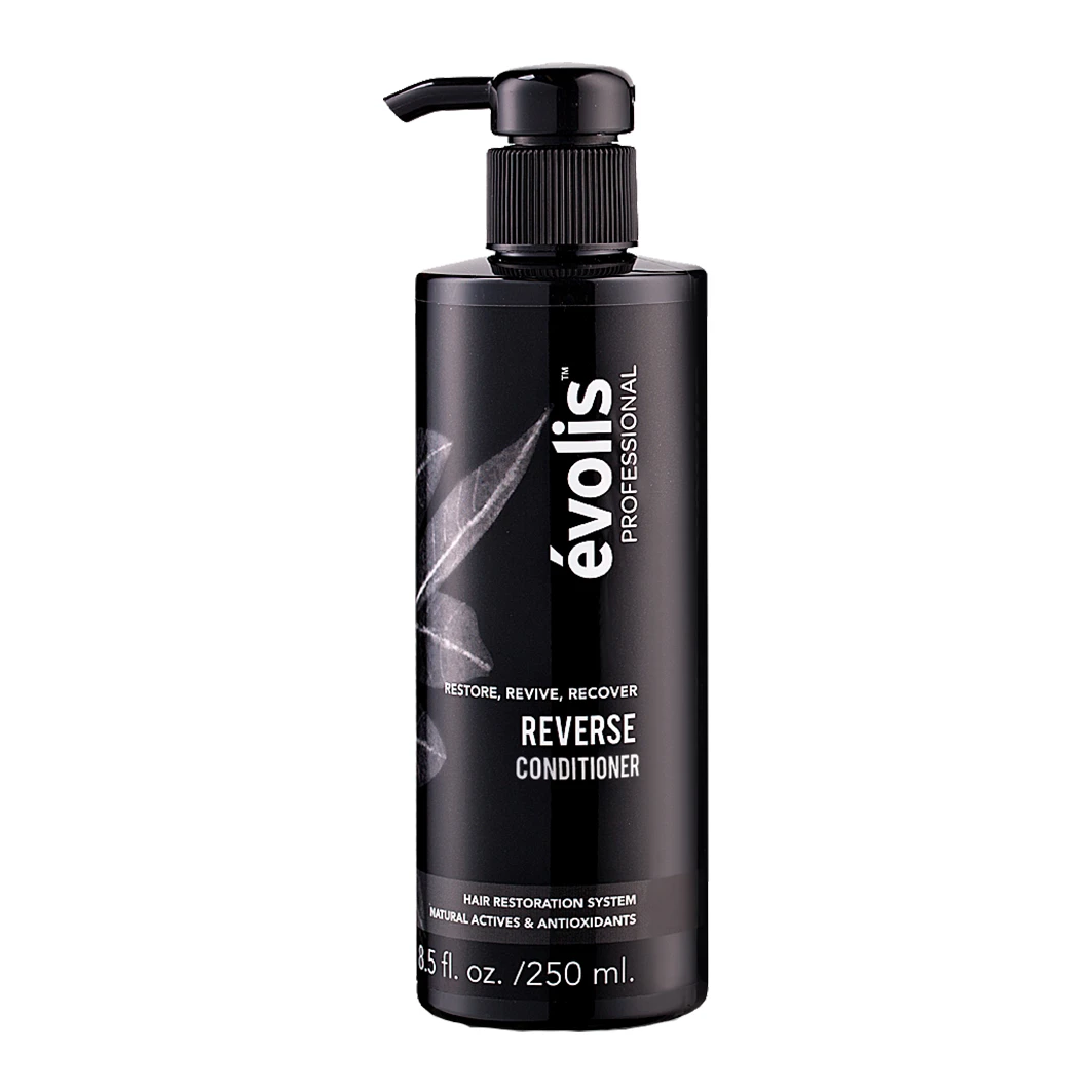 Apply the évolis REVERSE Conditioner to your hair directly following REVERSE Shampoo. Gently massage from mid-lengths to ends. Rinse, then follow with REVERSE Activator for best results.