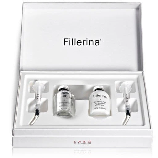The Fillerina ® Dermo-Cosmetic Treatment is a 2-step kit that comes in 3 different grades.