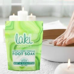 Relax and unwind after a long day on your feet with Laki Naturals detoxifying foot soak salts. The all-natural formula will help revive your feet with its nourishing formula and all-natural, clean ingredients. Treat yourself to an at-home spa day and watch your worries (and your calluses) fade away.