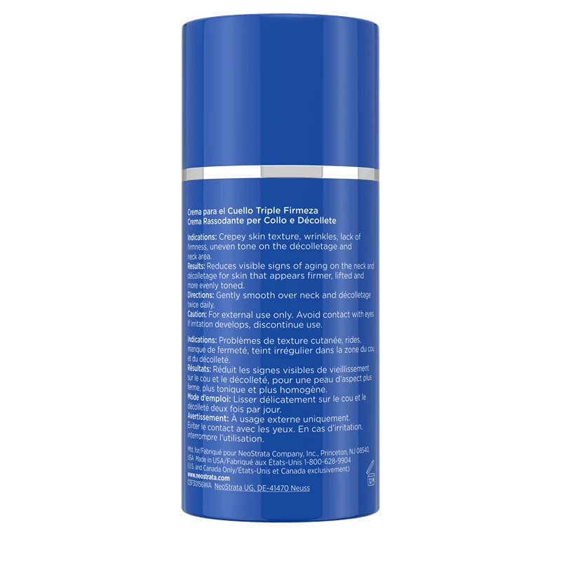 This antiaging neck cream is formulated with a complex of three ingredients, each with a unique action to deliver a lifted and firmer appearance. NEOGLUCOSAMINE®, NEOCITRIATE® and Pro-Amino Acid work together to firm the appearance of sagging skin and target the volumizing matrix. This potent cream is enriched with a restorative fruit stem cell extract. Reduces visible signs of aging on the neck and décolletage for skin that appears firmer, lifted and more evenly toned.