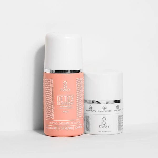 STEP 1 – SWAY Detox Deodorant: Shake bottle gently with cap on. Apply 2 to 3 swirls to each clean, dry underarm and let completely dry.