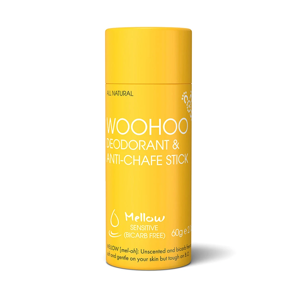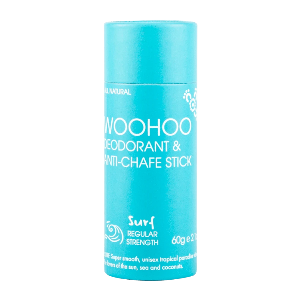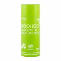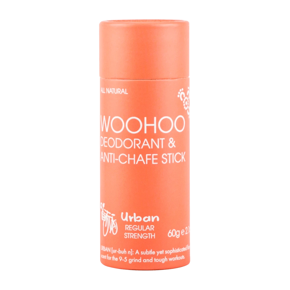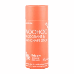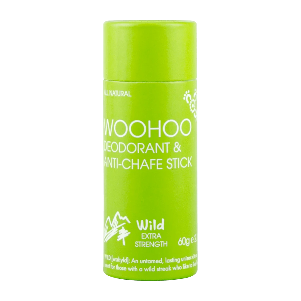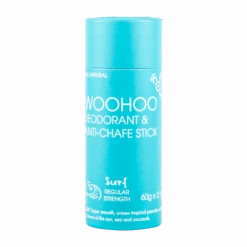 All the body-odor busting powers of the original Woohoo All Natural Deodorant Paste PLUS a new eco-friendly cardboard tube, easier application AND chafe prevention.